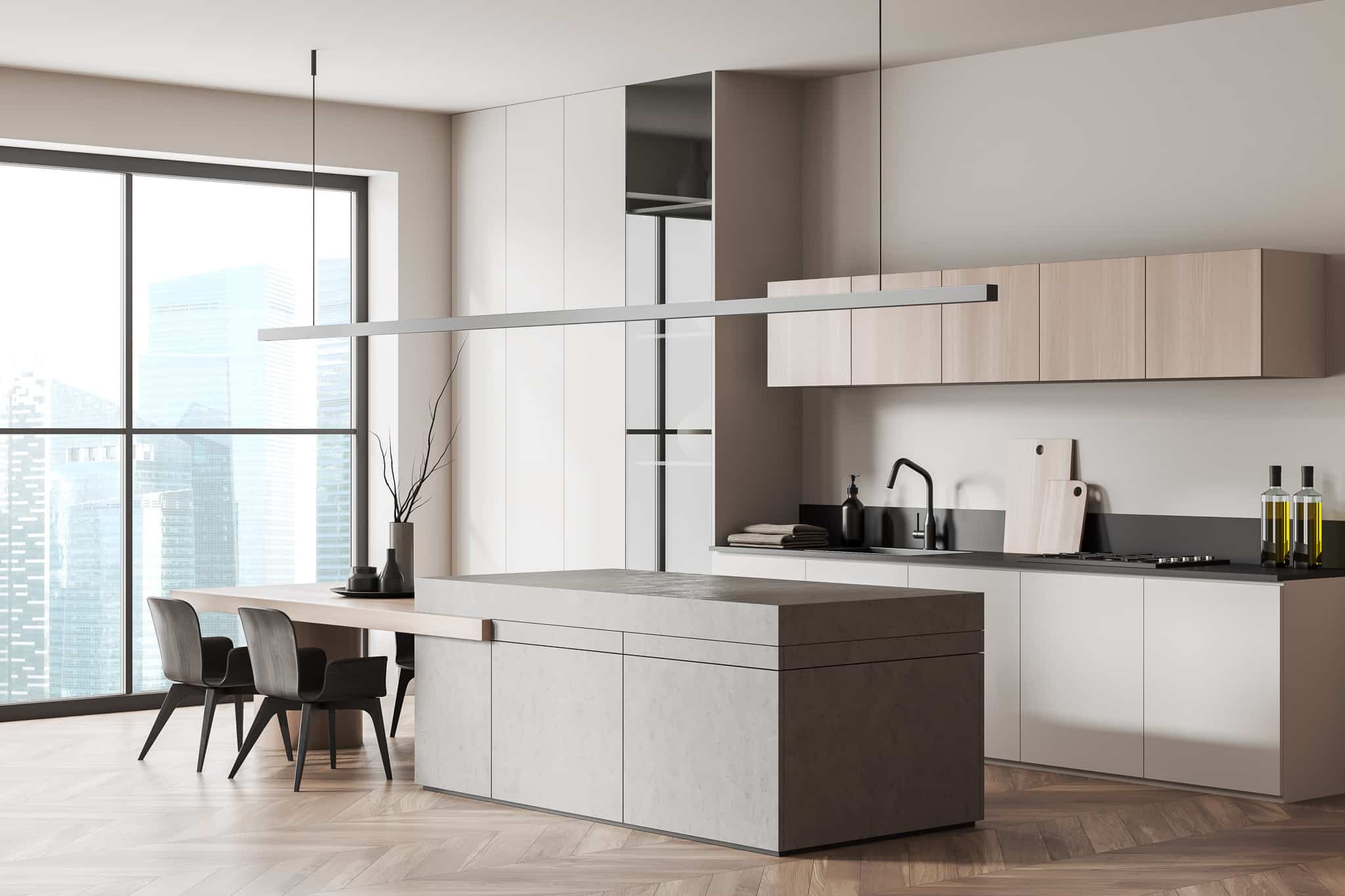Een belangrijk kenmerk van een Moderne keuken is het gebruik van neutrale kleuren. Dit omvat kleuren zoals wit, beige, grijs en zwart. Deze kleuren worden vaak gebruikt om een rustige en serene sfeer te creëren in de ruimte. Het gebruik van neutrale kleuren kan ook helpen om de ruimte groter en ruimer te laten lijken.